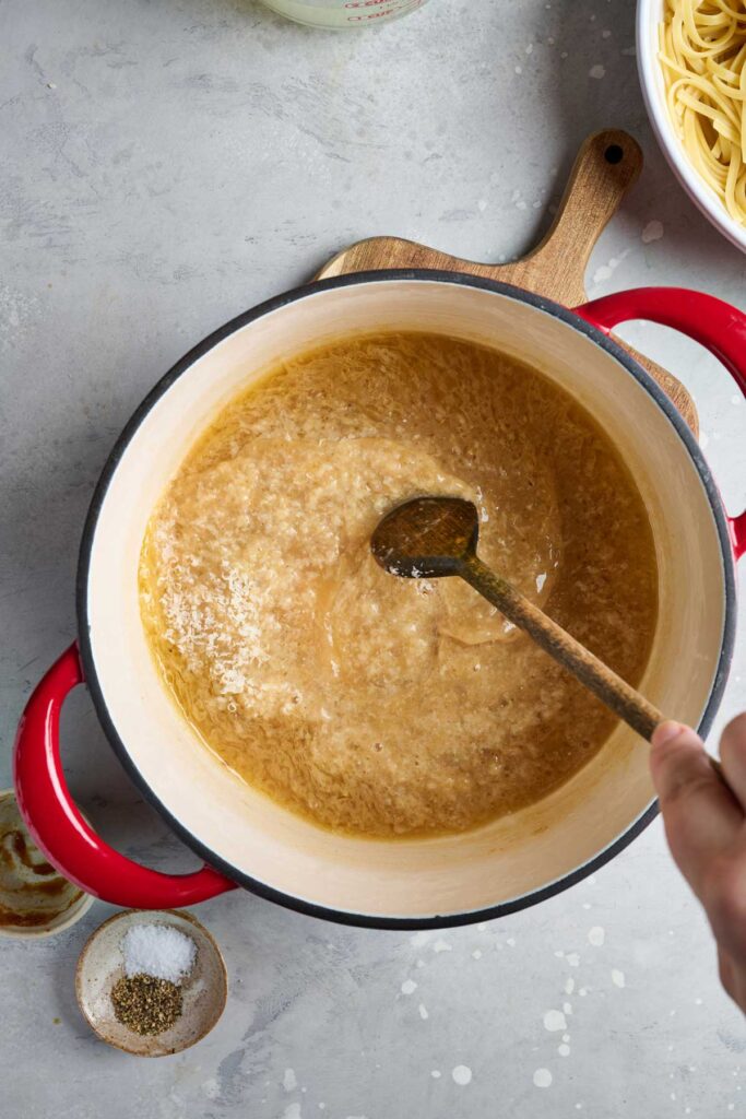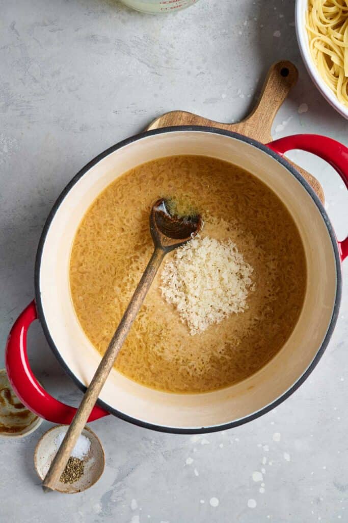 - Parmesan Cheese: Adds saltiness, nuttiness, and more umami. Finely grated cheese melts more smoothly and helps thicken the sauce naturally.